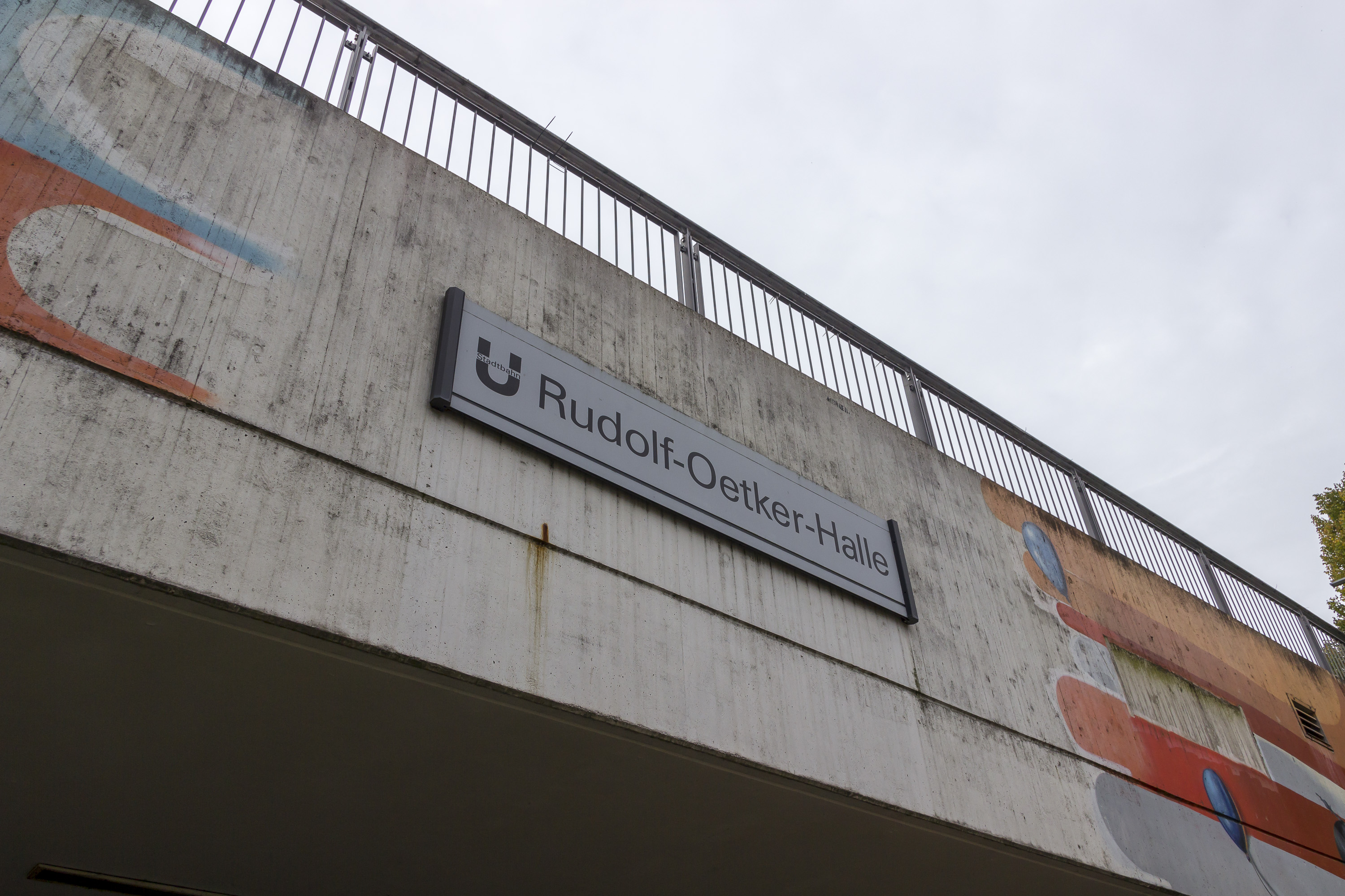 Deutsch: Stationsschild der Haltestelle Rudolf-Oetker-Halle
