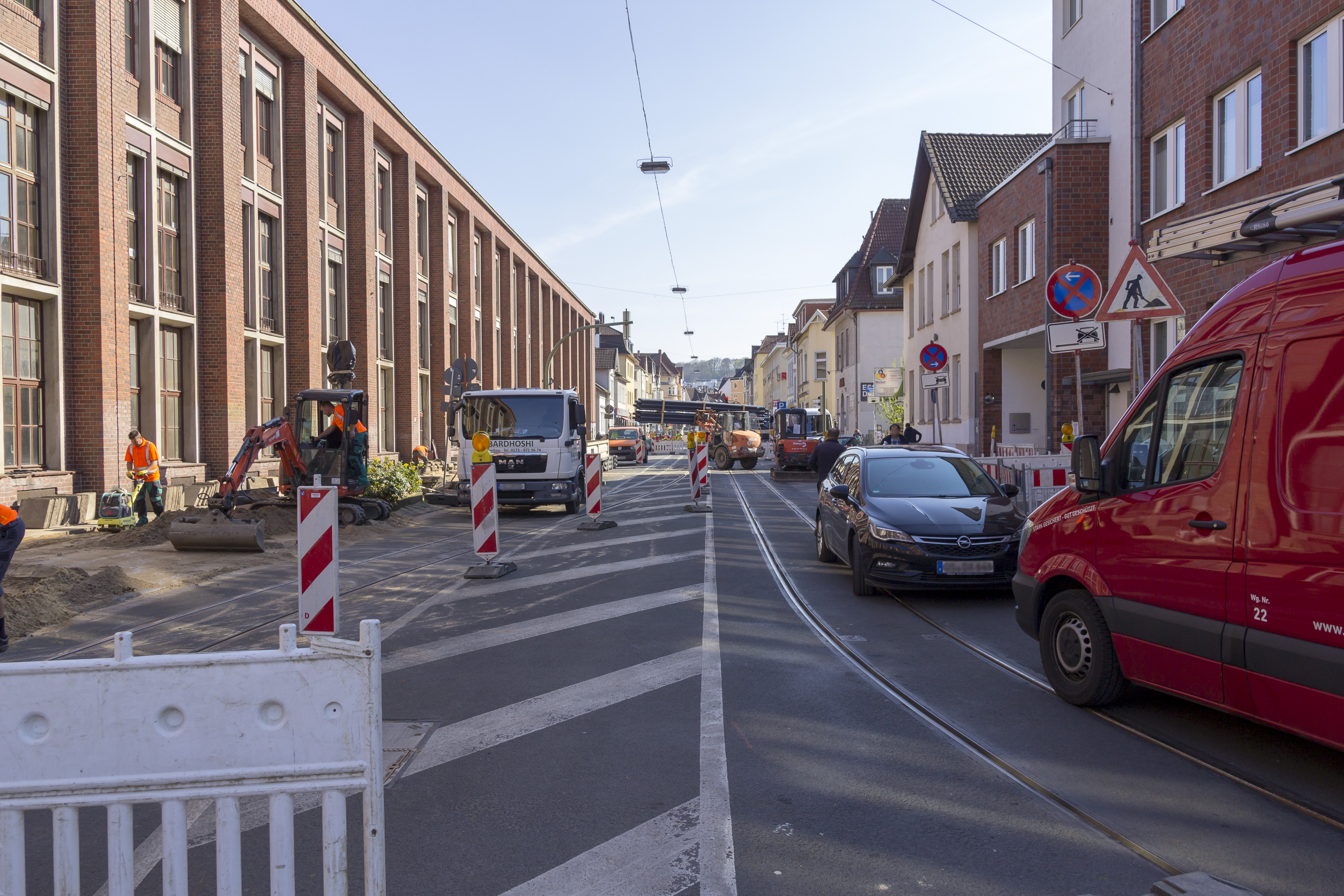Die sich im Bau befindliche Haltestelle Marktstraße Blickrichtung Süden.