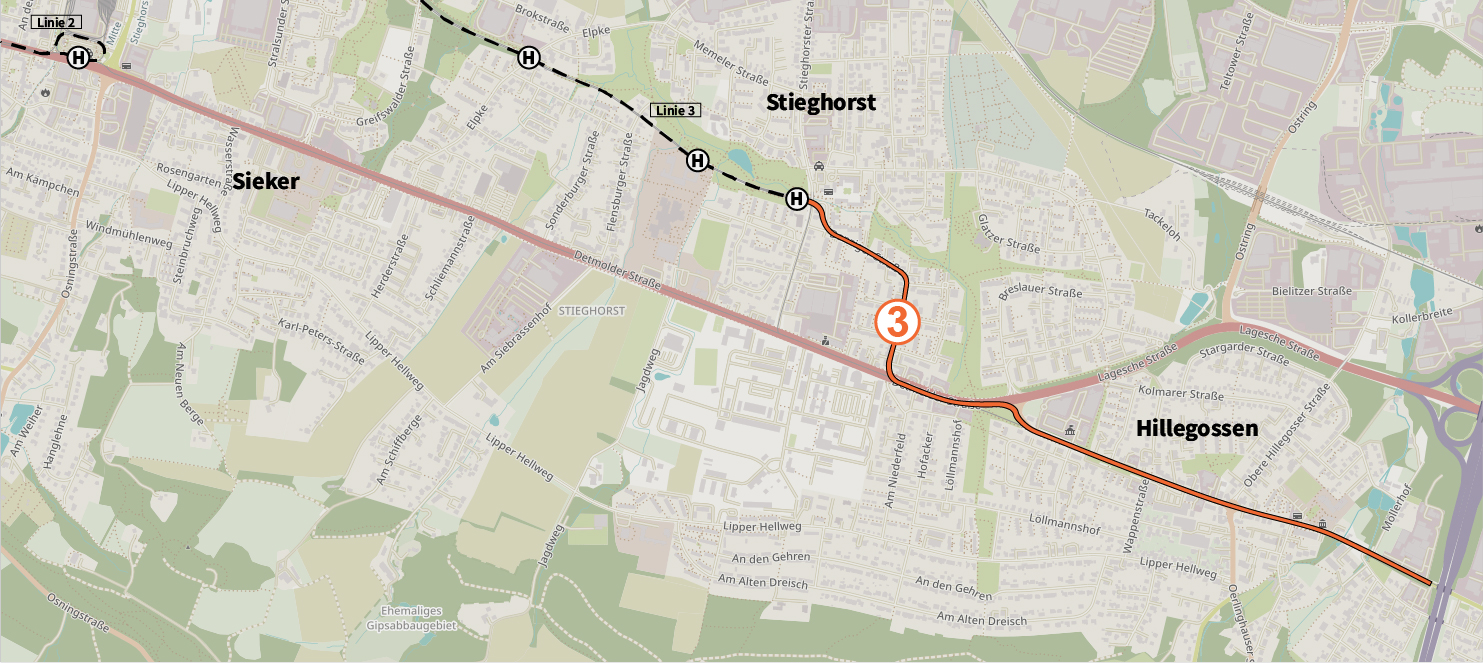 Deutsch: Die Planungsvariante 3 zum Ausbau nach Hillegossen (2019).