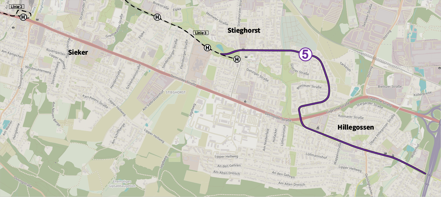 Deutsch: Die Planungsvariante 5 zum Ausbau nach Hillegossen (2019).