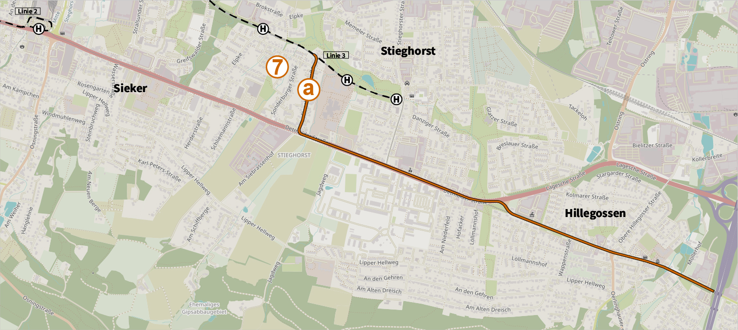 Deutsch: Die Planungsvariante 7a zum Ausbau nach Hillegossen (2019).