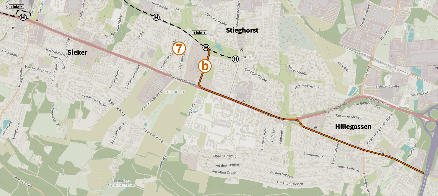 Deutsch: Die Planungsvariante 7b zum Ausbau nach Hillegossen (2019).