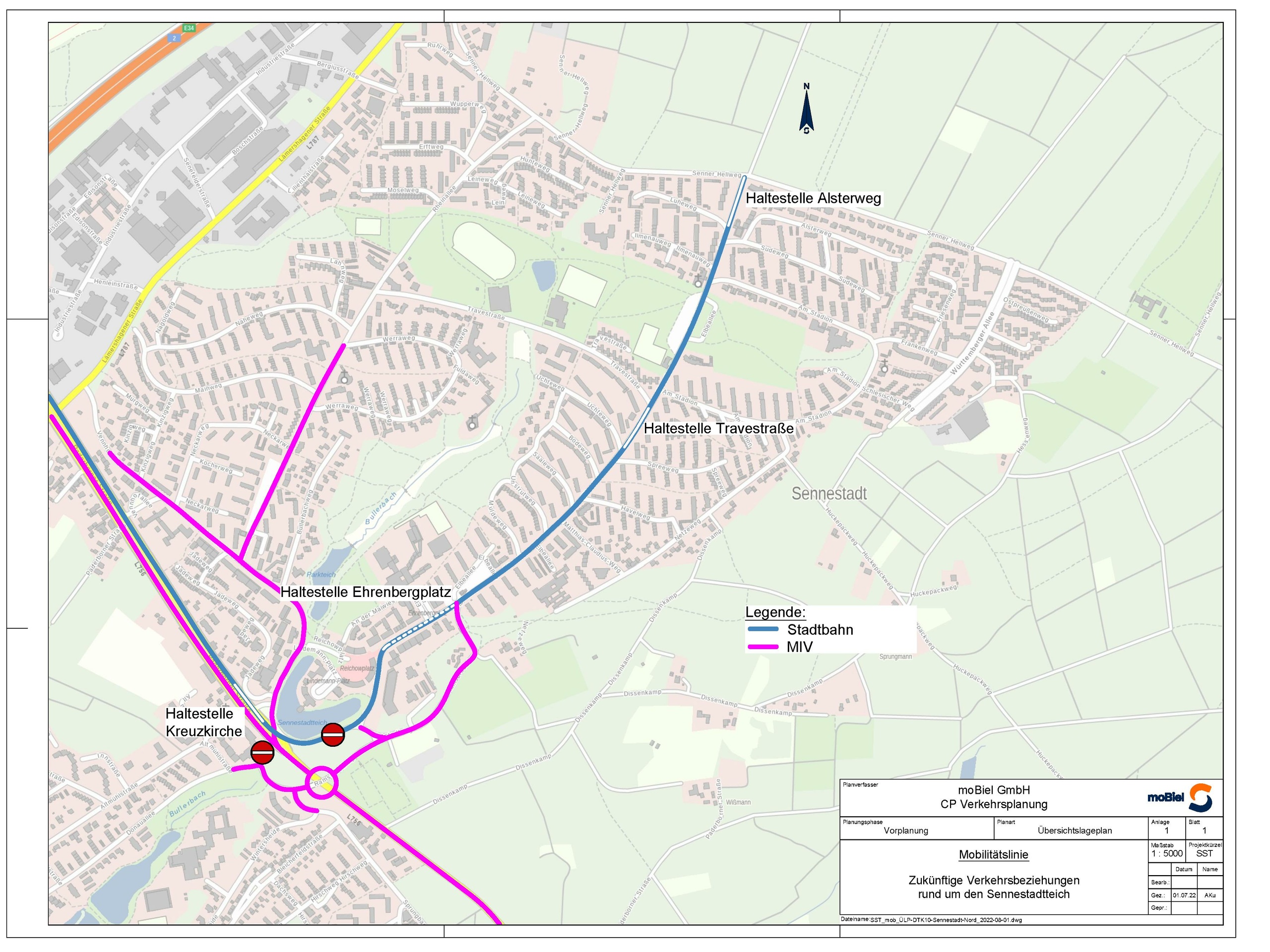 Deutsch: Zukünftige Verkehrsbeziehungen rund um den Sennestadtteich
